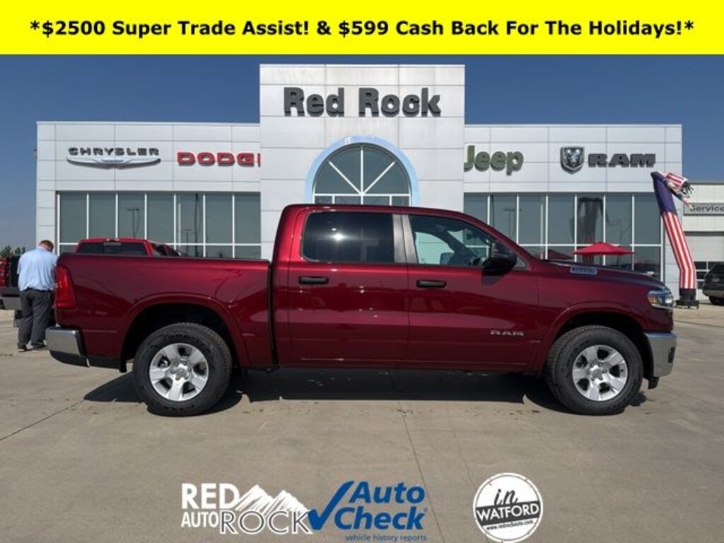 Why Buy from Red Rock Auto? We do things different here. At Red Rock Auto, youâre not just buying a vehicle - youâre buying into a local team that puts you first. We price every vehicle upfront with total transparency - no games, no pressure. The most rebates, incentives and Dealer Discounts are already built in, and weâll help you stack every offer you qualify for: College Grad Bonus, First-Time Buyer Programs, Lease Loyalty, Military Appreciation, and more. We make sure your best deal is the first one. As a locally owned and operated dealership, weâre proud to serve Watford City and the greater Bakken region since day one. We believe in simple, fast, and fair deals that make sense for your life and your work. Thatâs why we brand ourselves as your âNo-Nonsense Truck Headquarters.â Need to trade? We offer Fair Market Trade Values and use trusted tools like JD Power and Kelley Blue Book to back it up. Get an Instant Cash Offer online or stop in for a fast, accurate appraisal. Your Vehicle. Your Deal. No Bull. - No Gimmicks - Just Trucks That Work - Award-Winning Customer Service - Flexible Financing - Fast and Fair-Trade Values - Transparent Upfront Pricing. Price does not include tax, title, and license fees. Price does includes: $1000 - 2026 West BC Bonus Cash . Exp. 01/05/2026 $3500 - 2026 National Retail Consumer Cash . Exp. 01/05/2026 $2500 - Super Trade Assist & $599 Holiday check back on select in stock inventory only. Trade-in must be a running, drivable vehicle, not salvaged or damaged. Trade any used vehicle 10 years old or newer with less than 120,000 miles and receive $2500 trade assistance. The $599 check back will be provided to the purchaser either as a check or applied directly as a reduction of the sale price. See Dealer For Details. Exp 12/242025