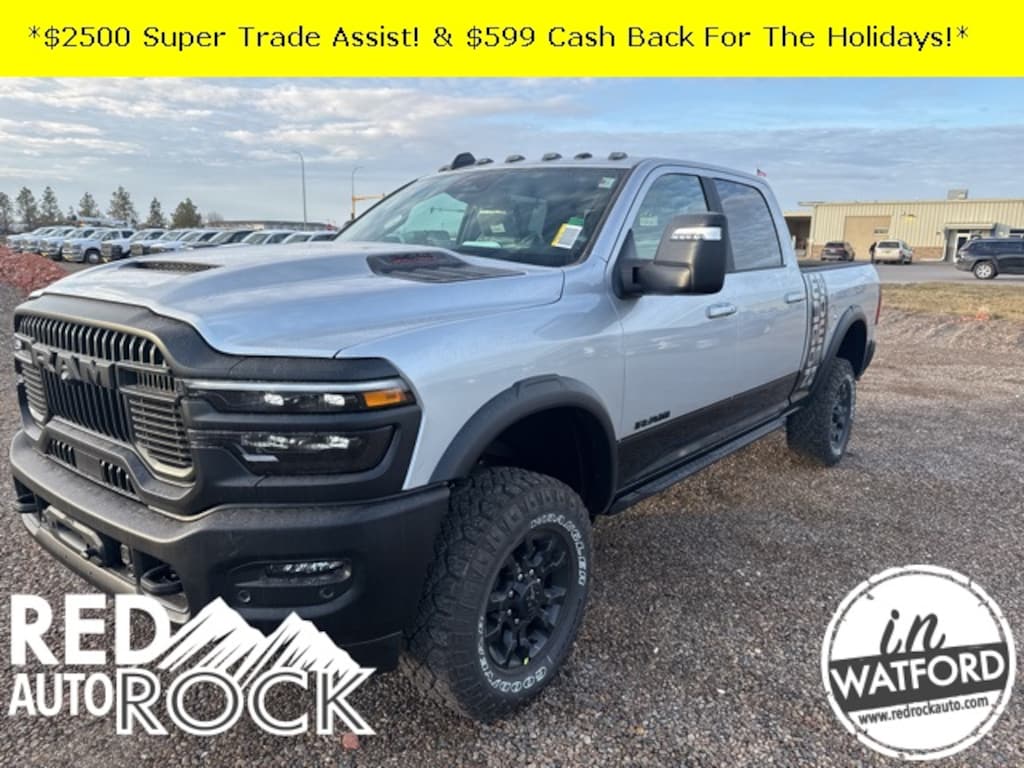 Why Buy from Red Rock Auto? We do things different here. At Red Rock Auto, youâre not just buying a vehicle - youâre buying into a local team that puts you first. We price every vehicle upfront with total transparency - no games, no pressure. The most rebates, incentives and Dealer Discounts are already built in, and weâll help you stack every offer you qualify for: College Grad Bonus, First-Time Buyer Programs, Lease Loyalty, Military Appreciation, and more. We make sure your best deal is the first one. As a locally owned and operated dealership, weâre proud to serve Watford City and the greater Bakken region since day one. We believe in simple, fast, and fair deals that make sense for your life and your work. Thatâs why we brand ourselves as your âNo-Nonsense Truck Headquarters.â Need to trade? We offer Fair Market Trade Values and use trusted tools like JD Power and Kelley Blue Book to back it up. Get an Instant Cash Offer online or stop in for a fast, accurate appraisal. Your Vehicle. Your Deal. No Bull. - No Gimmicks - Just Trucks That Work - Award-Winning Customer Service - Flexible Financing - Fast and Fair-Trade Values - Transparent Upfront Pricing. $2500 - Super Trade Assist & $599 Holiday check back on select in stock inventory only. Trade-in must be a running, drivable vehicle, not salvaged or damaged. Trade any used vehicle 10 years old or newer with less than 120,000 miles and receive $2500 trade assistance. The $599 check back will be provided to the purchaser either as a check or applied directly as a reduction of the sale price. See Dealer For Details. Exp 12/242025
