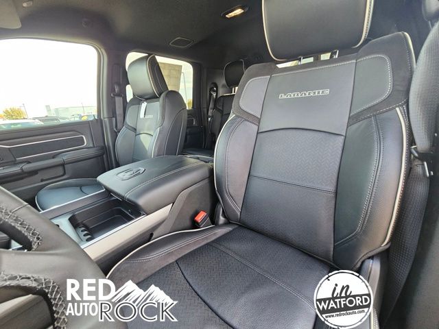 Convenience and technology are at the forefront, with features like power-deployable running boards, a remote tailgate release, and a 17-speaker Harman Kardon premium audio system. The Laramie Level 2 Plus Equipment Group further enhances the experience, offering amenities like ventilated front seats, a dual wireless charging pad, and an adaptive steering system for effortless maneuverability.
