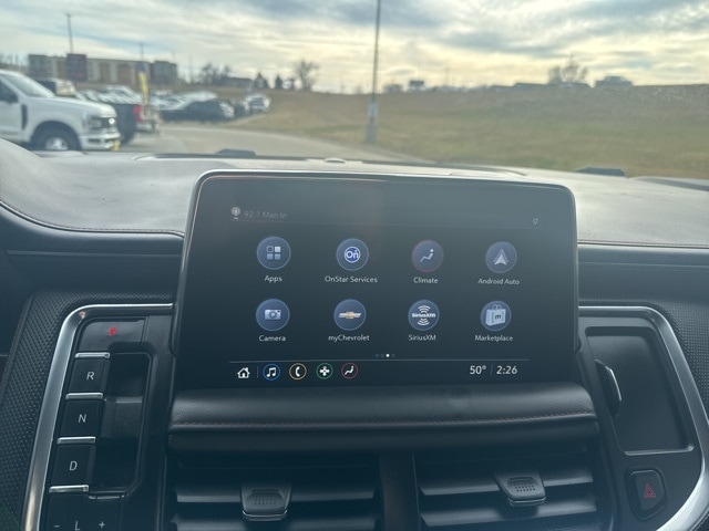 We have a Google Rating of 4.6, come in and see why our customers love us! We are the largest Ford Dealership in North Dakota. We service all makes and models. We have a full service Body Shop. Our Used Car Managers thoroughly research the market to insure our prices represent the most value for your money. Some of the factors used to make this determination are equipment, miles, condition, and, vehicle history. We take this approach to pricing to ensure a "hassle free" purchase experience. Check out the rest of the features on this vehicle. License Plate Front Mounting Package, Preferred Equipment Group 1SP (10-Way Power Driver & Passenger Seat Adjusters, 1st & 2nd Row Color-Keyed Carpeted Floor Mats, 2 USB Data Ports, Auto-Dimming Inside Rear-View Mirror, Bose 9-Speaker Stereo Audio System Feature, Bright Front & Rear Door Sill Plates, Color-Keyed Carpeting Floor Covering, Driver & Front Outboard Passenger Airbags, Floor Console w/Storage Area, Hands-Free Rear Power Programmable Liftgate, HD Radio, Heated Driver & Front Passenger Seats, Infotainment Display, Leather-Wrapped Steering Wheel, LED Daytime Running Lamps, Memory Settings For Driver, Remote Start, SiriusXM Radio w/360L, and Universal Home Remote), 3.23 Rear Axle Ratio, 3rd row seats: split-bench, 4-Wheel Disc Brakes, 9 Speakers, ABS brakes, Air Conditioning, Alloy wheels, AM/FM radio: SiriusXM with 360L, Apple CarPlay/Android Auto, Auto High-beam Headlights, Auto-dimming Rear-View mirror, Automatic temperature control, Brake assist, Bumpers: body-color, Compass, Delay-off headlights, Driver door bin, Driver vanity mirror, Dual front impact airbags, Dual front side impact airbags, Electronic Stability Control, Emergency communication system: OnStar and Chevrolet connected services capable, Four wheel independent suspension, Front anti-roll bar, Front Bucket Seats, Front Center Armrest, Front dual zone A/C, Front reading lights, Fully automatic headlights, Garage door transmitter, Heated door mirrors, Heated front seats, Illuminated entry, Leather steering wheel, Low tire pressure warning, Memory seat, Occupant sensing airbag, Outside temperature display, Overhead airbag, Overhead console, Panic alarm, Passenger door bin, Passenger vanity mirror, Perforated Leather Seating Surfaces, Power door mirrors, Power driver seat, Power Liftgate, Power passenger seat, Power steering, Power windows, Premium audio system: Chevrolet Infotainment 3 Plus, Premium Smooth Ride Suspension, Radio: Chevrolet Infotainment 3 Plus System, Rain sensing wipers, Rear air conditioning, Rear anti-roll bar, Rear reading lights, Rear seat center armrest, Rear window defroster, Rear window wiper, Remote keyless entry, Roof rack: rails only, Security system, Speed control, Speed-sensing steering, Split folding rear seat, Spoiler, Steering wheel mounted audio controls, Tachometer, Telescoping steering wheel, Tilt steering wheel, Traction control, Trip computer, Variably intermittent wipers, Voltmeter, Wheel Locks (Set of 4) (LPO), and Wheels: 22" x 9" Bright Machined.