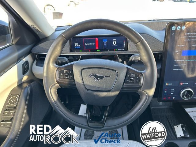 Step inside the Mach-E and you'll be greeted by a spacious, well-appointed cabin that seamlessly blends style and technology. The SYNC 4A infotainment system with enhanced voice recognition puts a world of connectivity at your fingertips, while the 10-speaker audio system delivers a premium listening experience.