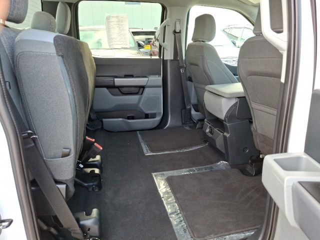 The exterior of this F-150 is sleek and stylish, with a white paint finish that commands attention. The 18-inch silver painted aluminum wheels and all-terrain tires provide a rugged, yet refined look. Inside, the spacious cabin offers premium cloth seating, ample storage, and a host of advanced technology features, including SYNC 4, to keep you connected and entertained on the road.