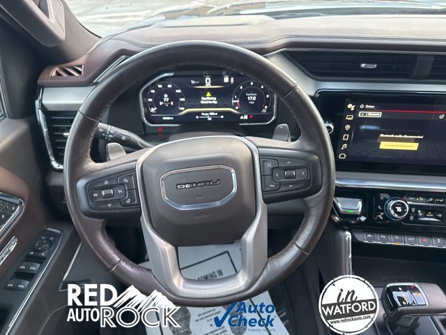 Elevate your driving experience with the premium features of this 2022 GMC Sierra 1500 Denali. The Denali's signature chrome accents, 20-inch polished aluminum wheels, and Spray-On Bed Liner with Denali logo create a bold, distinctive style that commands attention. Step inside and you'll be surrounded by luxurious touches, including genuine wood trim, heated and ventilated front seats, and a premium Bose sound system.