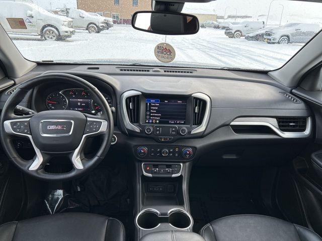 Step inside and you'll be greeted by a wealth of premium features, including Perforated Leather-Appointed Seat Trim, Heated Front Seats, and an 8-Way Power Driver Seat Adjuster. The Terrain SLT also comes equipped with the latest technology, such as Wireless Apple CarPlay/Wireless Android Auto, a 8" GMC Infotainment Audio System, and a Rear Vision Camera.