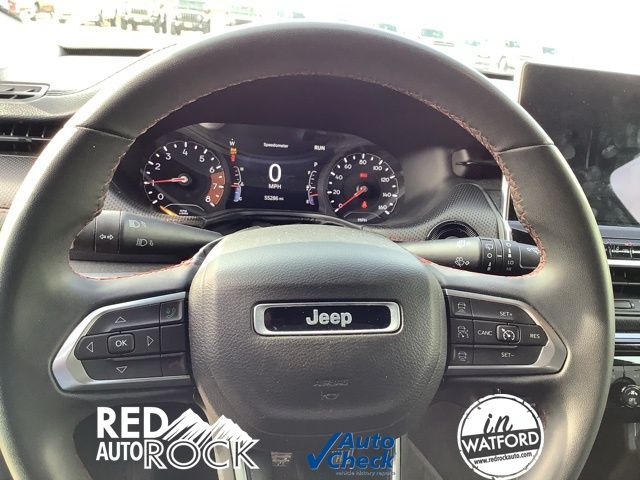The Trailhawk trim level equips this Compass with enhanced off-road capabilities, including a lifted suspension, all-terrain tires, and skid plates to conquer the toughest terrain. Whether you're navigating winding mountain roads or exploring uncharted trails, this Jeep is up for the challenge.