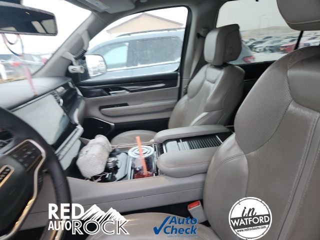 Inside, the Wagoneer offers a premium cabin with luxurious leather-trimmed seats, heated and ventilated front seats, and a spacious third-row for additional passenger capacity. The Uconnect 5 infotainment system with a 10.1-inch display keeps you connected and entertained, while the Surround View Camera System provides enhanced visibility for confident maneuvering.
