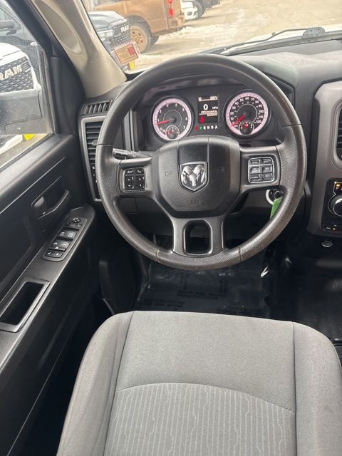 The Tradesman trim level offers a range of practical features, including a 32-gallon fuel tank, a Class IV receiver hitch, and a trailer brake control system. With its durable cloth upholstery and easy-to-clean interior, this Ram 1500 is built to withstand the demands of your daily tasks, whether you're hauling heavy loads or navigating rough job sites.